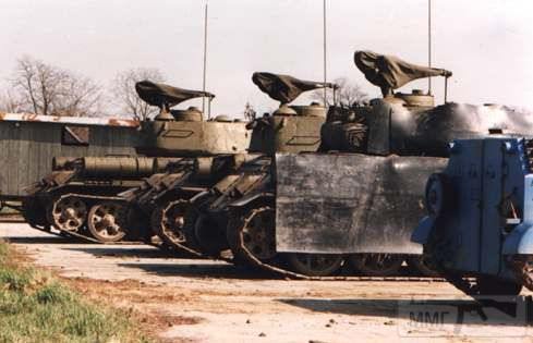 34-ки боснийских сербов... Один из танков покрыт защитными листами из резины...